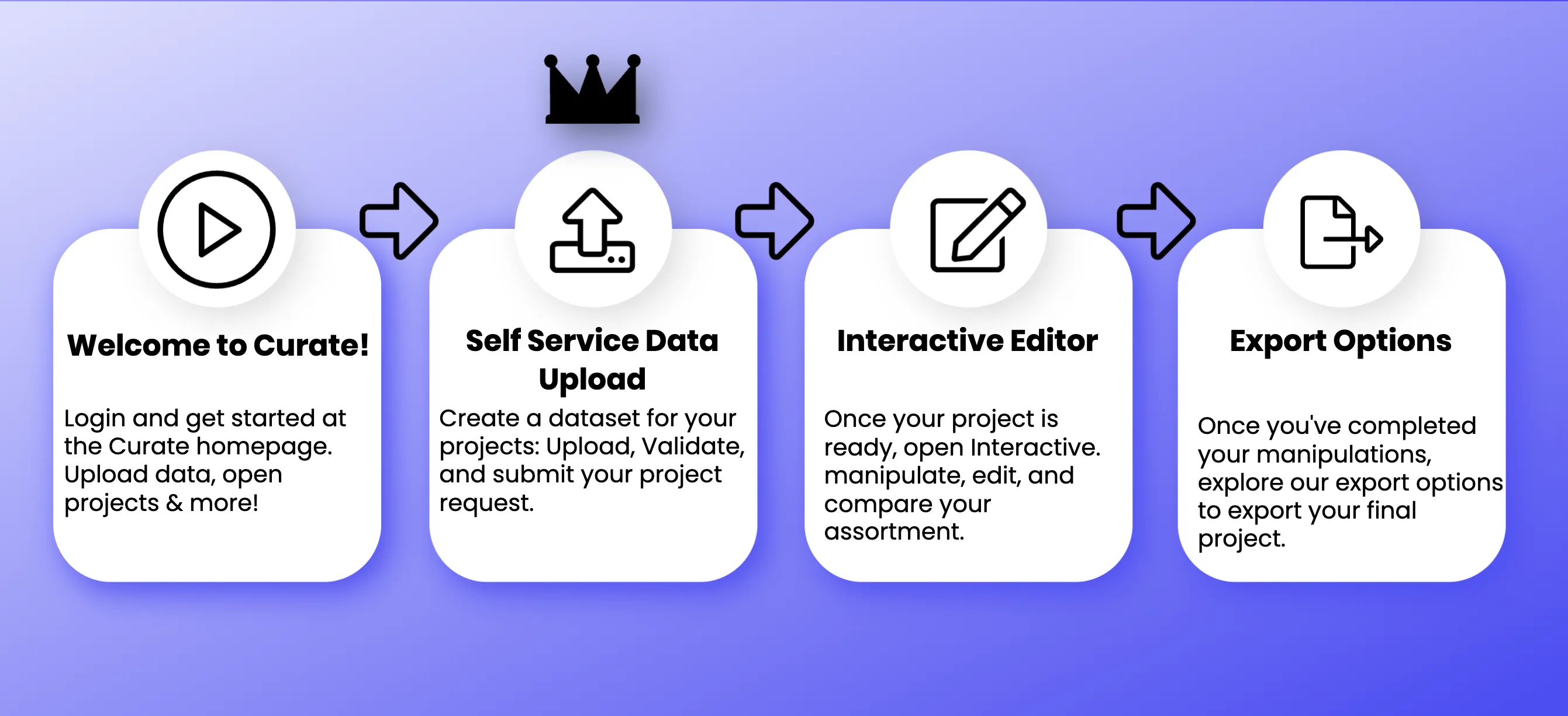 Welcome to Curate’s Data Management tool. This service empowers users like you to upload and manage your data for that will drive project insights and decision-making in Curate. Let’s dive into the purpose of this feature, the validation process, and ensuring your data is well formed.